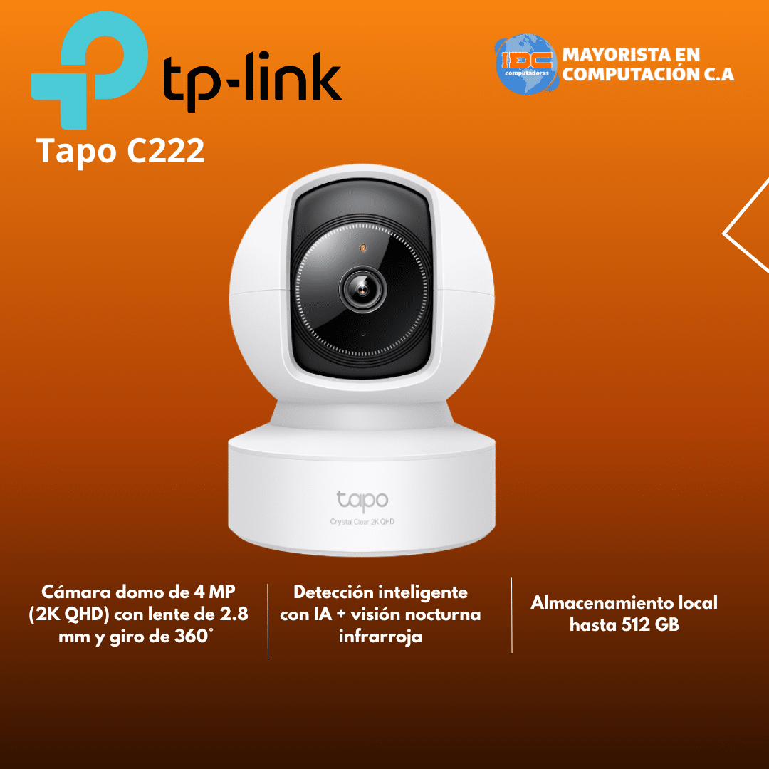 Camara Tplink/tapo C222/360 Grados/ 2k Qhd/detec.mov. Ia/ Hasta 512gb/ Wifi 2.4ghz/rj45 – TAPOC222