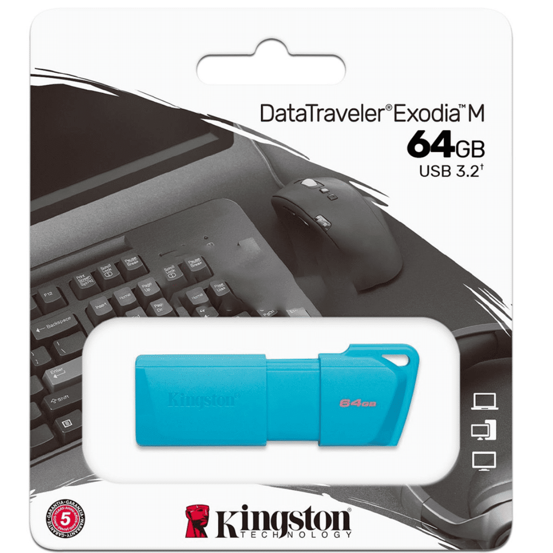 Flash Memory 64gb Kingston Kc-u2l64-7lb Exodia Usb 3.2 Neon Aqua Blue