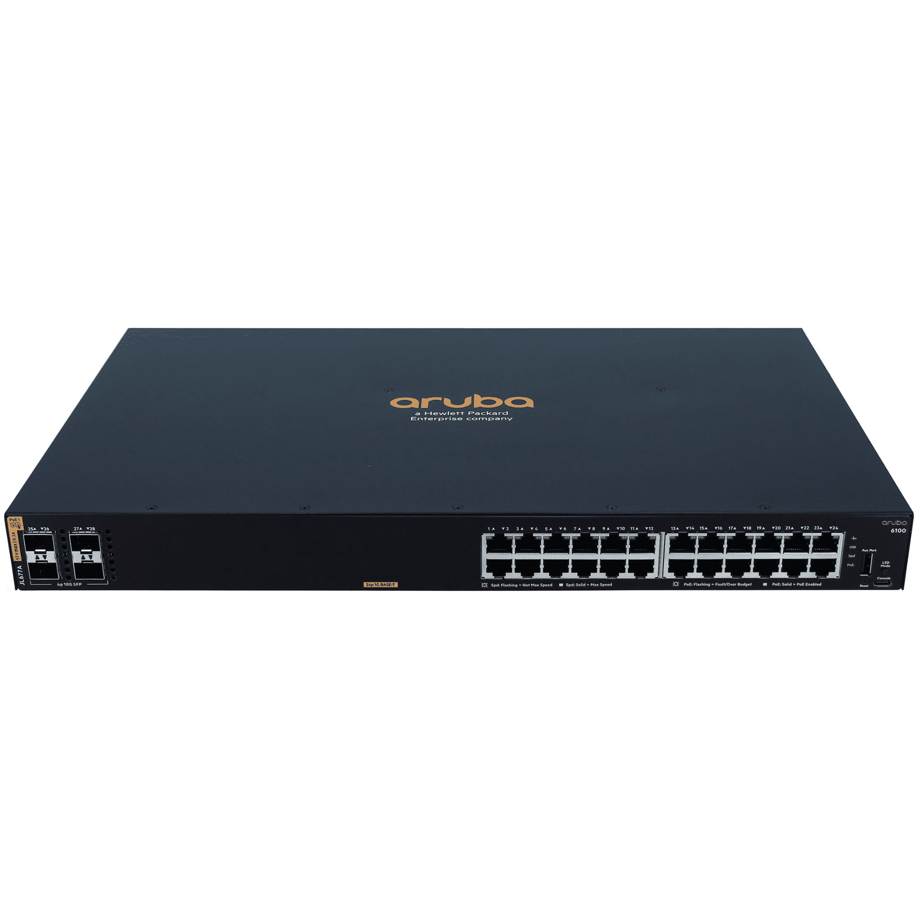 HPE Aruba 6100 24G Class4 PoE 4SFP+ – Conmutador – Gestionado – 24 x 10/100/1000 (PoE+) + 4 x 1 Gigabit / 10 Gigabit SFP+ – flujo de aire de lado a lado – montaje en rack – PoE+ (370 W) – Redes – Hubs & Switches – JL677A