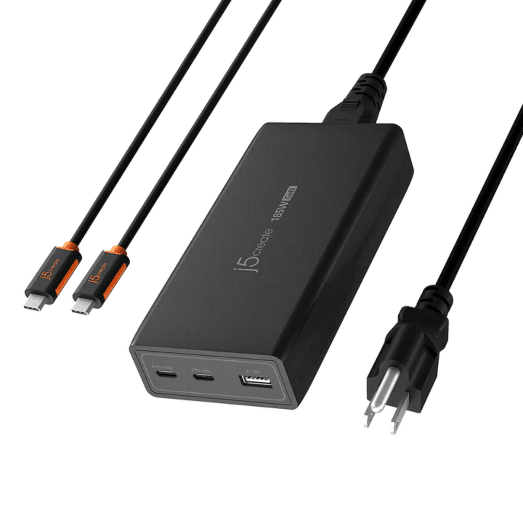j5create j5create AC JUP37185 185W GaN PD 3.1 USB-C 3-Port Charger Retail AC 302053 JUP37185